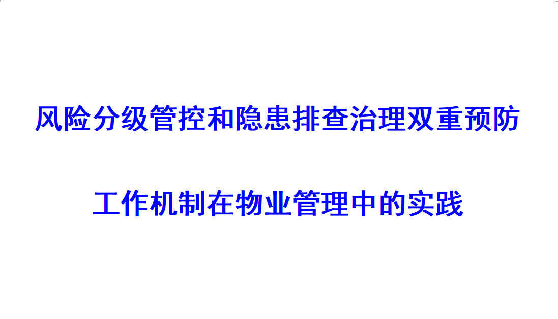 • 風險分級管控和隱患排查治理雙重預(yù)防工作機制在物業(yè)管理中的實踐 [2021-01-22]